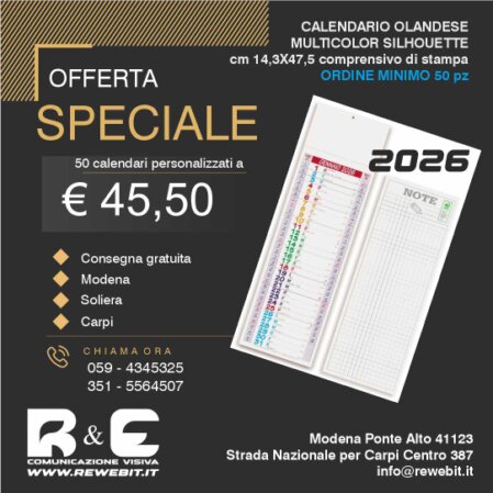 calendario 2026 olandese con stampa compresa nel prezzo